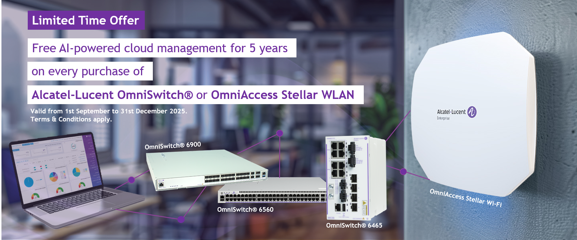 Take control of your network, the smart way – now with this limited-time promotion valid from 1st September to 31st December 2025. Your business can access advanced AI-powered network management free for 5 years – giving you greater control, visibility, and savings of up to US$2,000 per device.